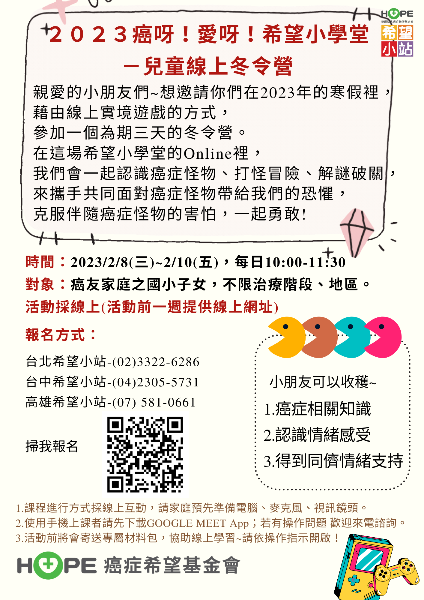 六、活動報名:即日起至2023年1月30日止 如有未盡事宜,請電洽本會活動負責人02-33226286分機215吳珮瑄社工。