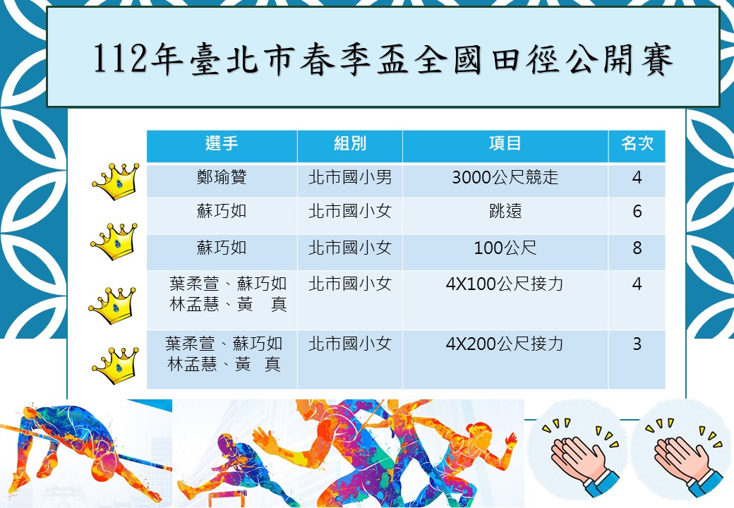 恭喜以上獲獎同學,感謝田徑隊周李擎老師、蔡旻庭教練、鄔惟喬教練平時的訓練與指導!