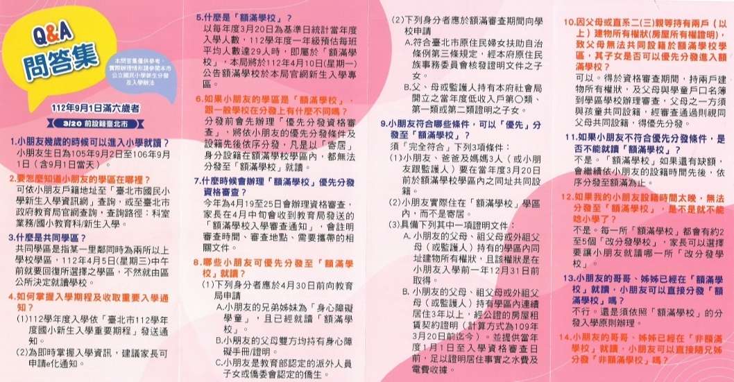 三、若您的孩子因出國、就讀私校、戶口遷移而確定不就讀本校,請於6/5(一)前填寫入學通知單中所附之【臺北市112學年度學齡兒童未就讀國民小學回條】郵寄或傳真至本校。傳真號碼:2553-4840。以利本校列管追蹤未入學之新生;國民小學為義務教育階段,適齡學童均應入學接受教育,無故未入學報到之適齡學童,將成為強迫入學委員會列管追蹤之對象,依「強迫入學條例」處理。(自開學日起按日罰鍰,每日新臺幣 300元)。