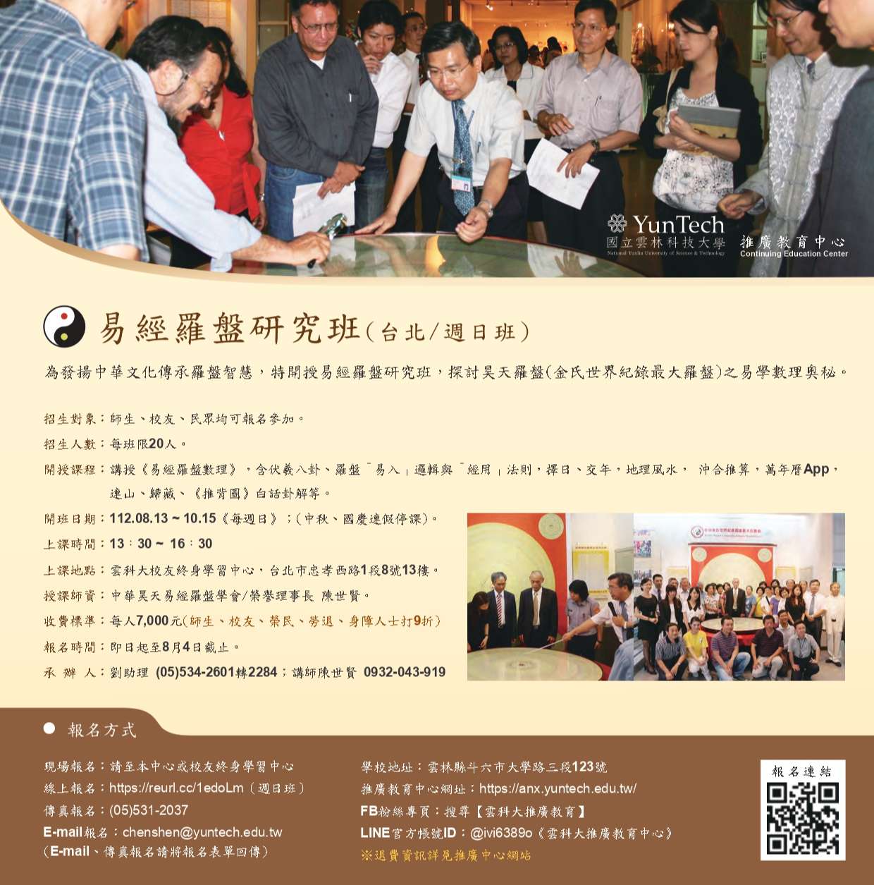 二、上課地點:雲科大校友終身學習中心,台北市忠孝西路1段8號13樓(台北車站對面),捷運板南線M8出口,保強大樓13樓。