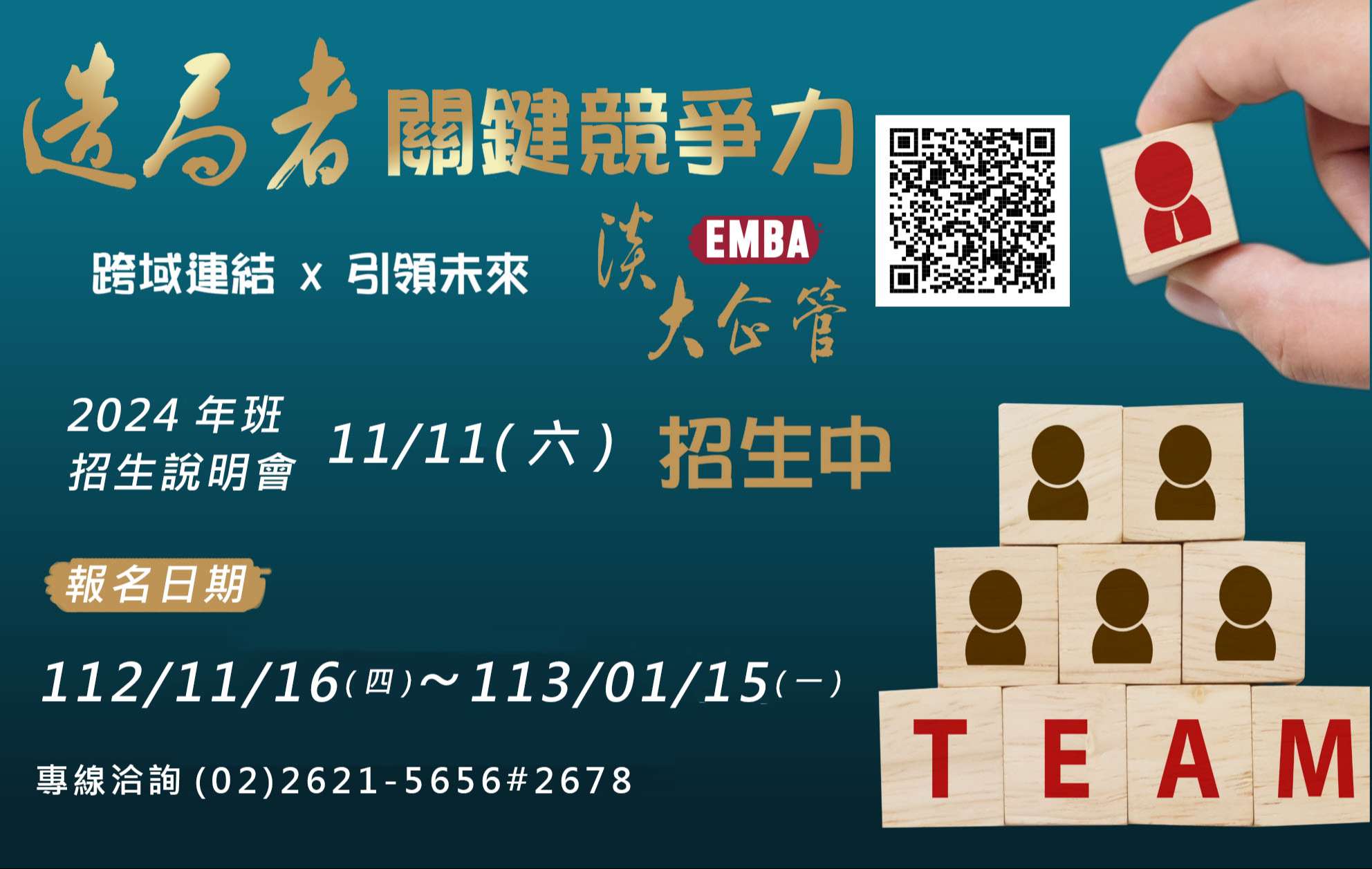 二、該專班招生報名日期為112年11月16日(星期四)至113年1 月15日(星期一)。