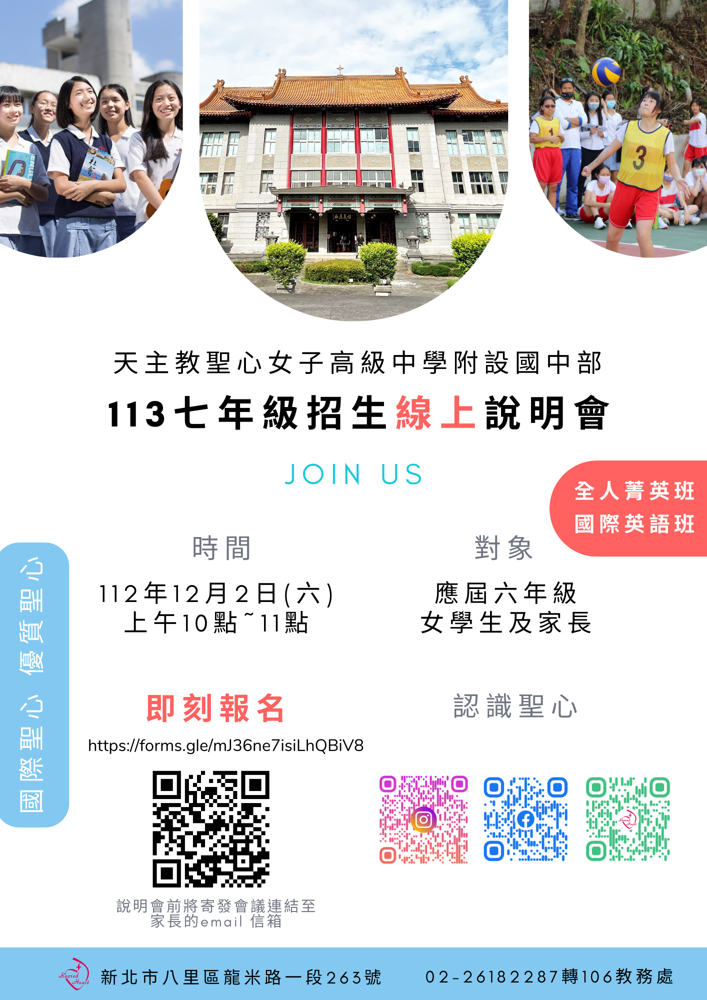 (二) 聖心女中首頁www.shgsh.ntpc.edu.tw—最新消息--113 七年級招生線上說明會