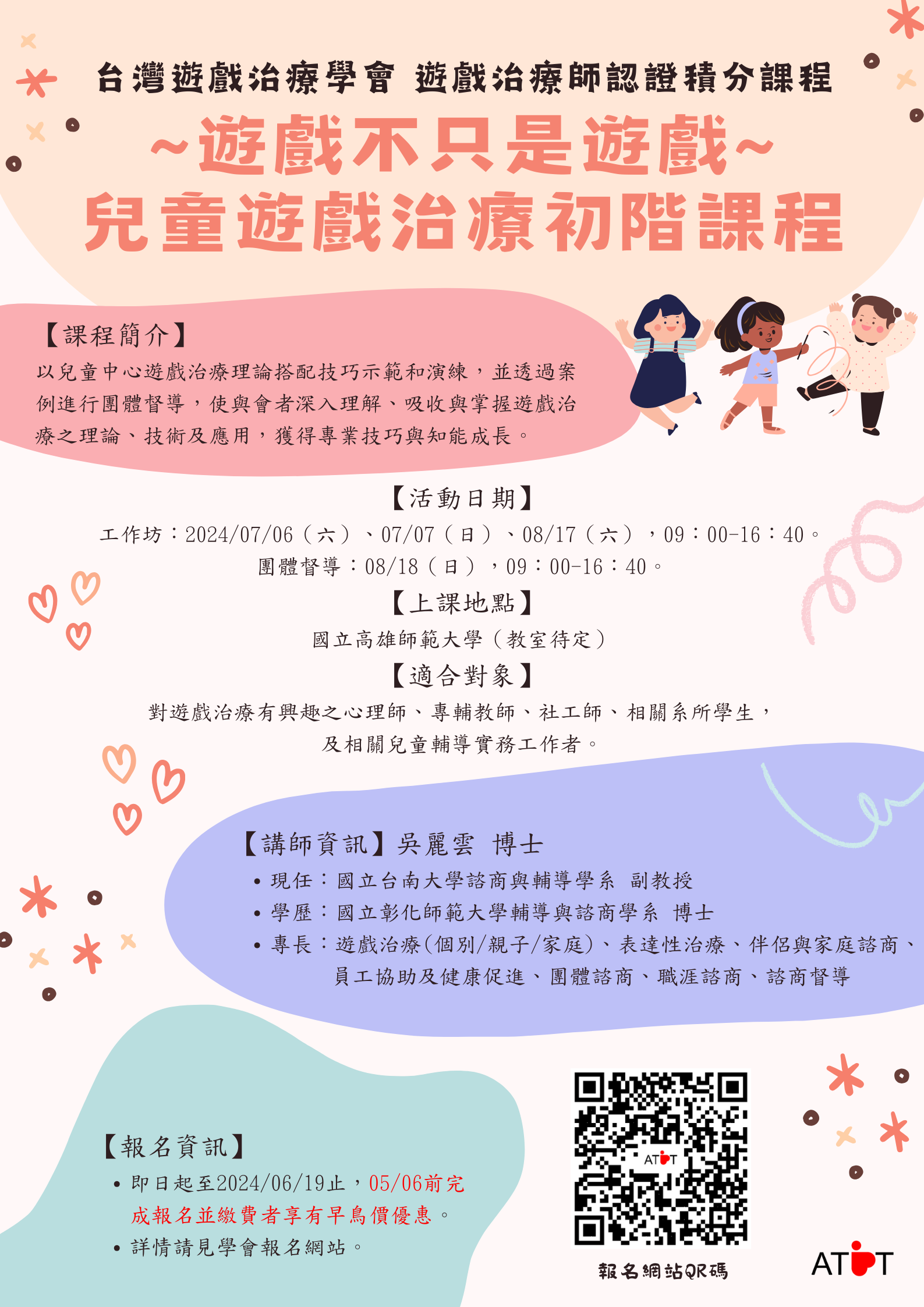 一、2024台灣遊戲治療師認證積分課程『遊戲不只是遊戲』兒