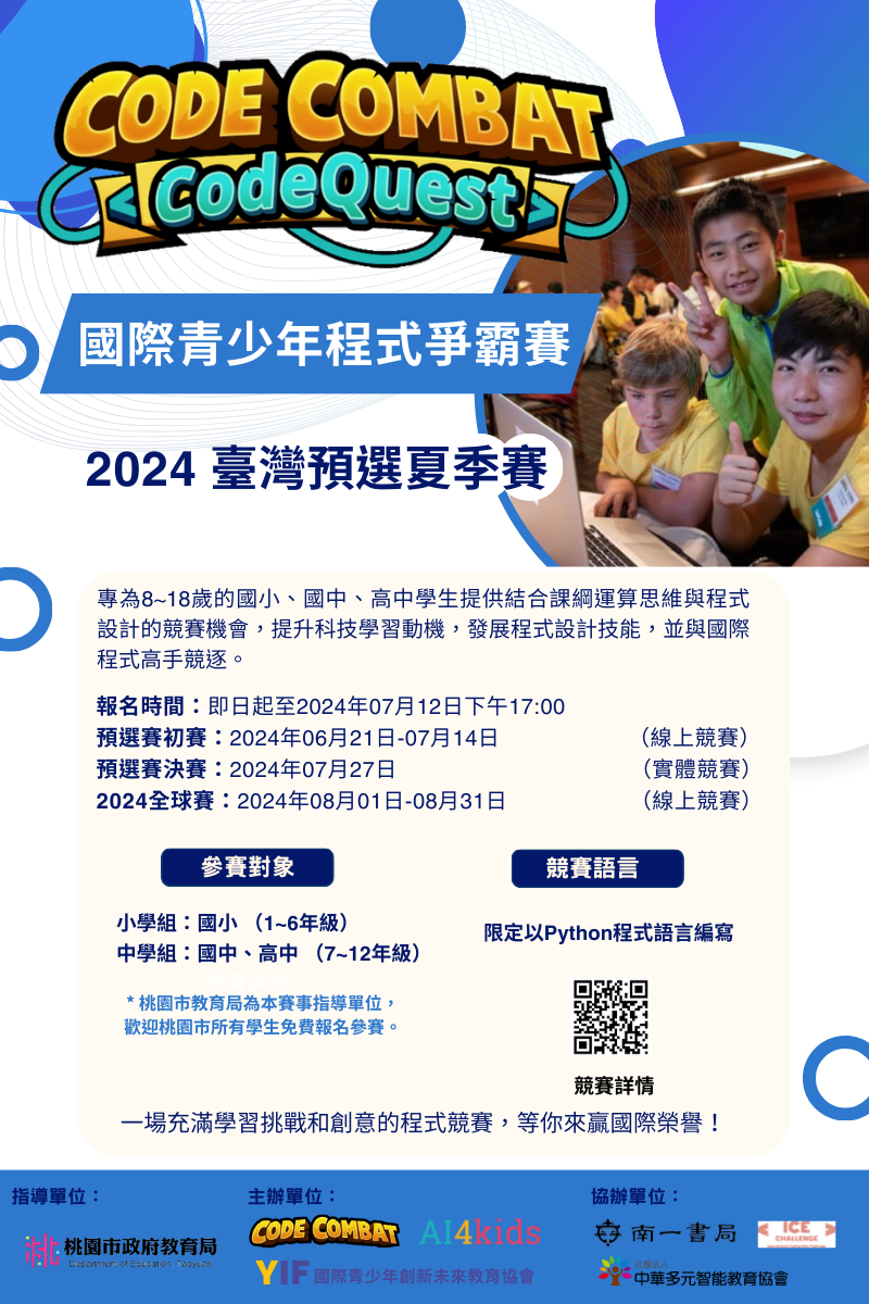 (四)預選賽決賽:2024年7月27日13:00~7月27日17:00(實體競賽),競賽地點:桃園市立中壢商業高級中等學校