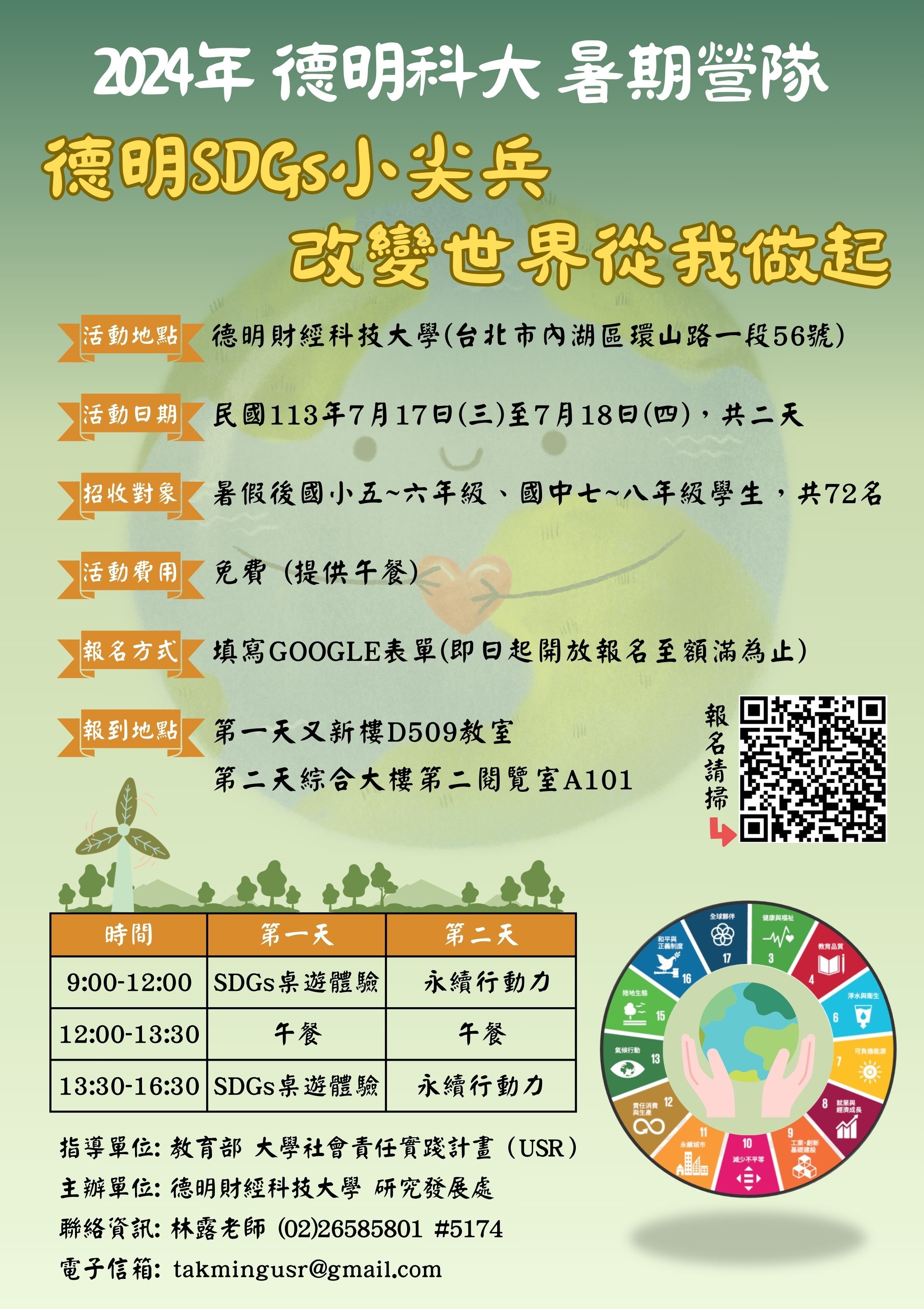 (三)活動地點:德明財經科技大學(臺北市內湖區環山路一 段56號)。