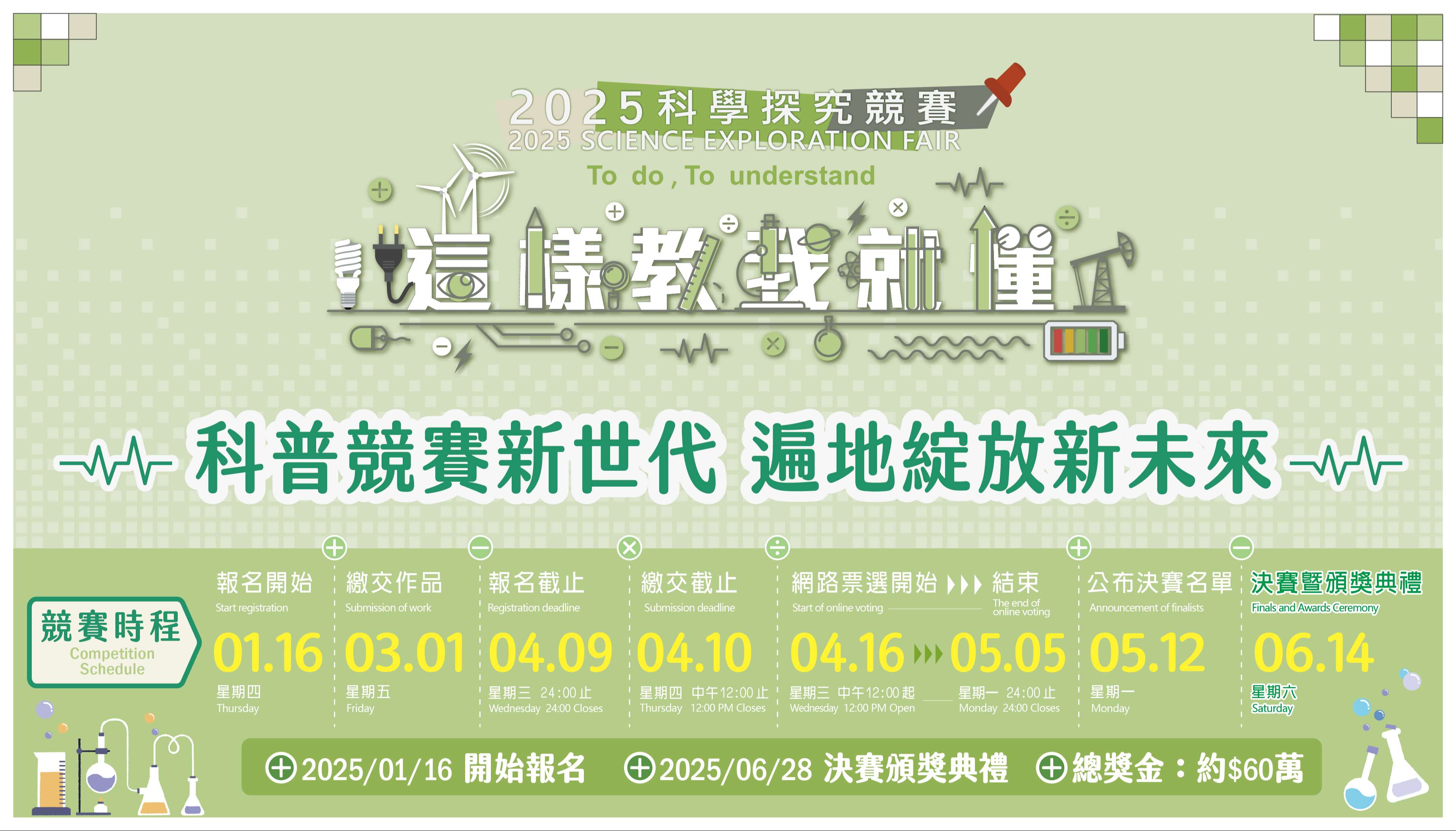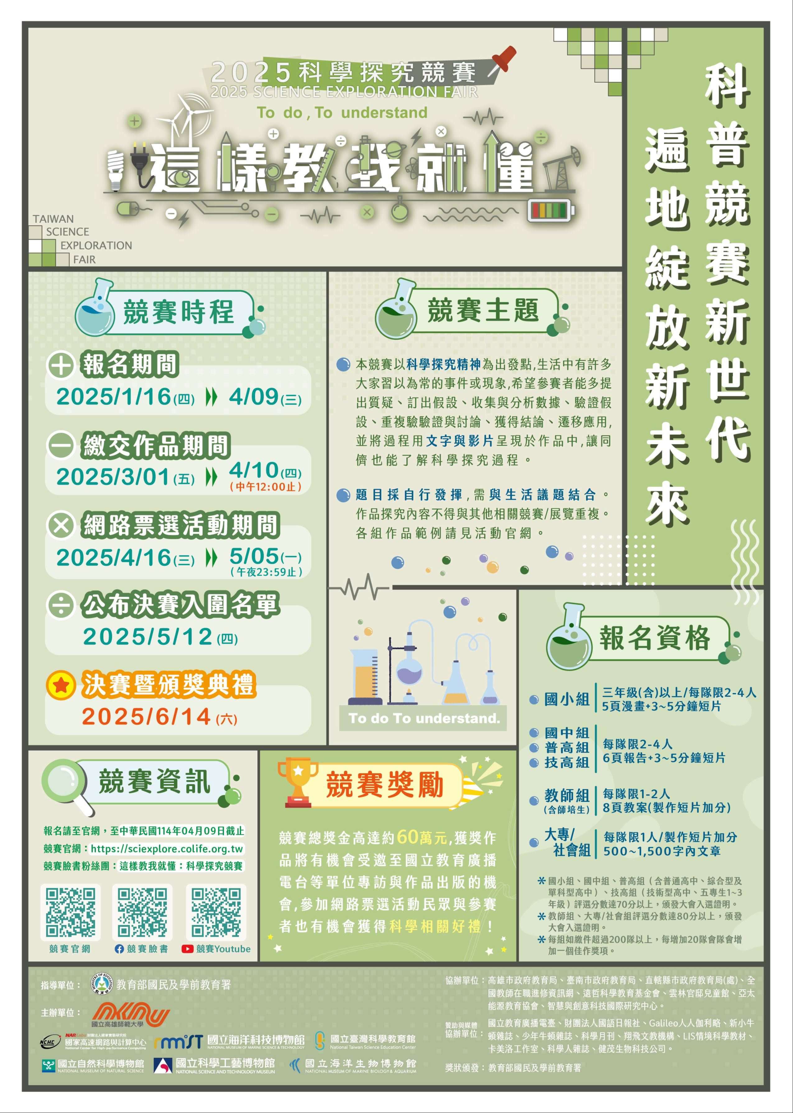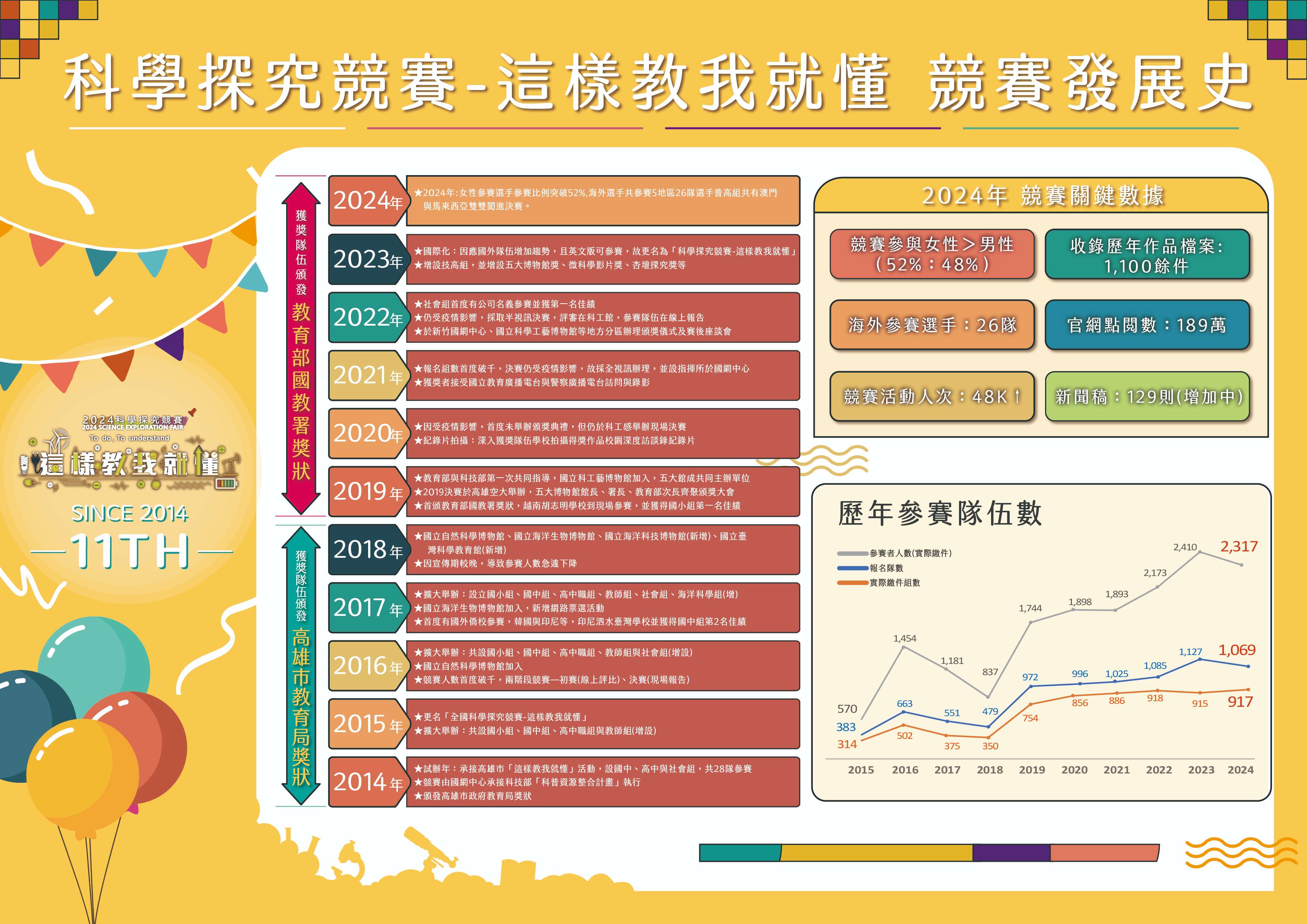 檢附競賽文宣海報、時程表及競賽演化歷史圖各1份,詳細 說明請參考官網,網址:http://sciexplore.colife.org. tw/