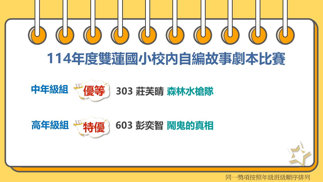 以上得獎作品將全部送件參加台北市自編故事劇本比賽。