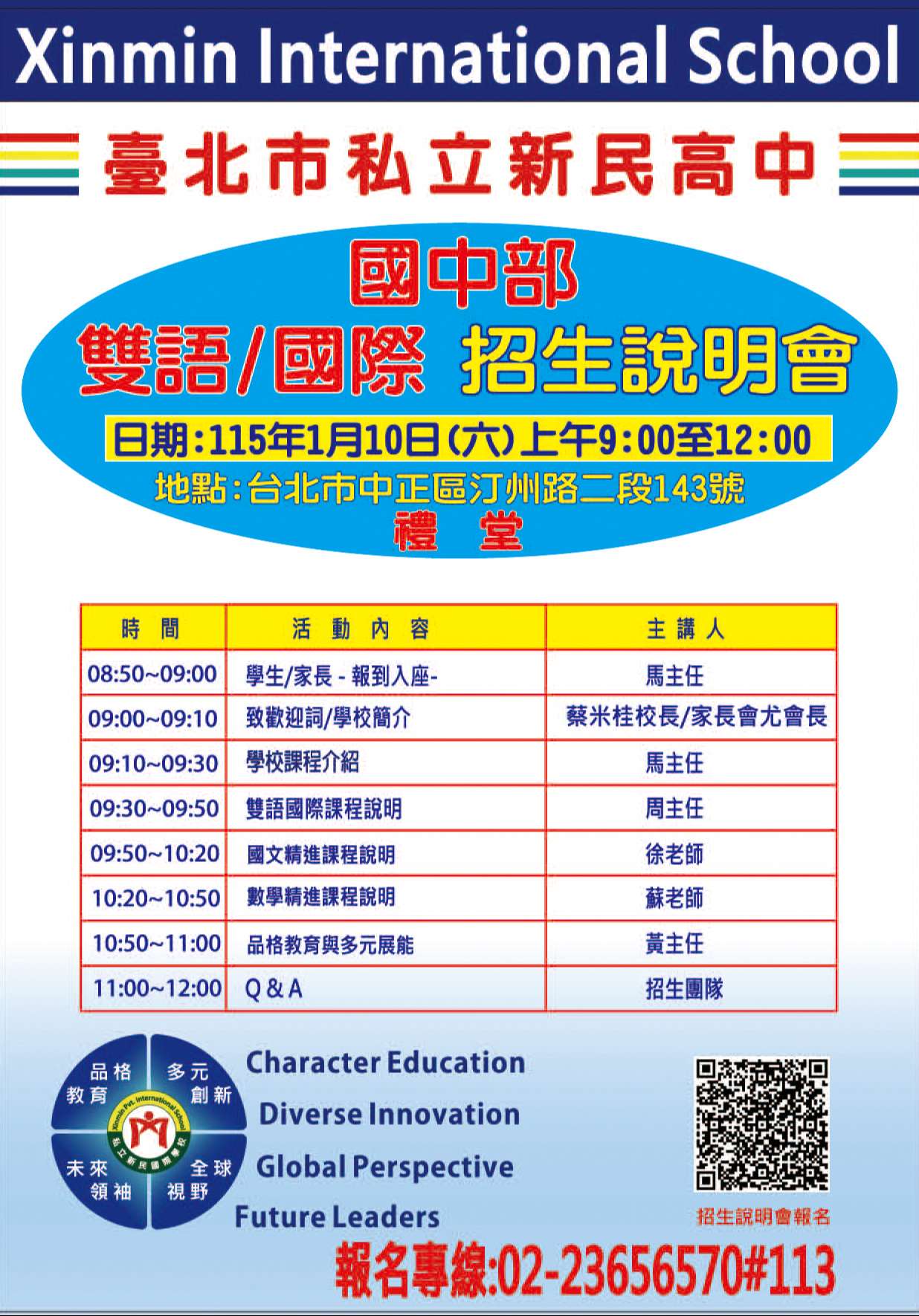 三、報名方式:可至本校官網或掃描附件QR Code。